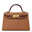 Madame Calfskin Matte Alligator Mini Kelly Sellier Touch 20 Gold Miel