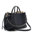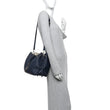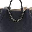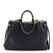 This is an authentic LOUIS VUITTON Mahina Bella Tote in Navy. This chic shoulder bag is crafted of perforated mahina leather in navy. The shoulder bag features a pull cinch cord, a leather threaded light gold chain strap and an adjustable leather strap with polished gold hardware. The top opens to a beige microfiber interior with a central zipper compartment.