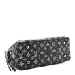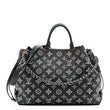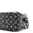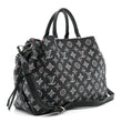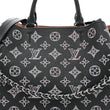 This is an authentic LOUIS VUITTON Mahina Flight Mode Bella Tote in Black. This chic shoulder bag is crafted of black calfskin leather perforated with the Louis Vuitton monogram and accented in white and pink. The bag features black rolled leather top handles and top cinch cord, a black leather threaded silver chain strap, and an adjustable leather shoulder strap. The top opens to a pink microfiber interior with a central zipper compartment.