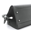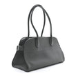 This is an authentic THE ROW Matte Grained Calfskin EW Margaux 12 in Timouse Grey. This shoulder bag is crafted of matte grained calfskin leather in grey. It features rolled leather top handles, side adjustment buckle straps, and palladium hardware. The top is open to a black leather interior with zipper and patch pockets.