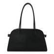 This is an authentic THE ROW Matte Grained Calfskin Margaux Shoulder 12 in Black. This shoulder bag is crafted of black grained calfskin leather. It features elongated tubular handles, side adjustment buckle straps, a toggle closure, and brushed silver hardware. The top opens to a smooth leather interior with a zipper and patch pockets.