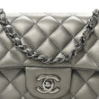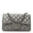 Metallic Lambskin Quilted Mini Rectangular Flap Dark Grey