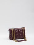 Elevate your accessory collection with this exquisite Saint Laurent mini bag, crafted from 100% luxurious calf leather in a rich burgundy hue. The iconic quilted chevron pattern and signature YSL logo hardware create an instantly recognizable statement of sophistication and style.