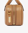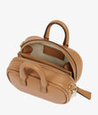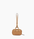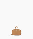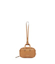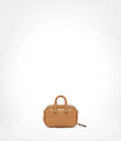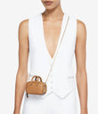 Micro Bag in calfskin, interior compartments for cards and personal accessories. Metallic gold link chain, leather fastener.