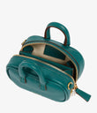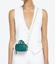 Micro Bag in calfskin, interior compartments for cards and personal accessories. Metallic gold link chain, leather fastener.