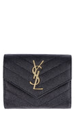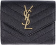 Elevate your everyday essentials with this exquisite mini wallet from Saint Laurent. Crafted from luxurious 100% matelassé leather featuring the iconic chevron quilted pattern, this compact wallet showcases the signature YSL logo in gleaming gold-tone hardware.