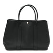 This is an authentic HERMES Negonda Garden Party Steeple Cadridge Tote 36 MM in Black. This sophisticated tote is finely crafted of black grained calfskin leather. It features expandable sides and matching leather trim that transitions into rolled leather top handles, as well as a palladium snap. The top unsnaps to a spacious printed fabric interior with a zipper pocket.