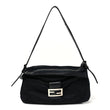 This is an authentic FENDI Neoprene Shoulder Bag in Black. This stylish bag is crafted of neoprene. The bag features a black looping leather shoulder strap with a facing flap and polished silver hardware with the FF logo. This opens to a black fabric interior with a zipper pocket.