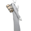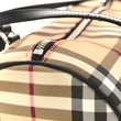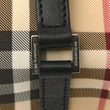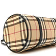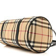 This is an authentic BURBERRY House Nova Check Barrel Bag in Black. This chic small handbag is crafted of classic house check coated canvas. The bag features black leather strap handles, black piping, and silver hardware. The top zipper opens to a black fabric interior with a zipper pocket.
