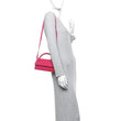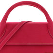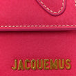 This is the authentic JACQUEMUS Nubuck Le Chiquito Long in Pink. This chic bag is crafted of calfskin leather in pink. The bag features a large top handle, an optional leather shoulder strap, and gold hardware. The front flap opens to a beige fabric interior with a patch pocket.