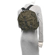 This is an authentic PRADA Nylon Vela Medium Backpack in Tundra. This backpack is crafted of dark green nylon and silver hardware. The top opens to a jacquard fabric interior with a zipper pocket.