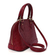 This is an authentic LOUIS VUITTON Ostrich Alma BB in Red. This stylish tote is crafted of luxurious ostrich leather in red. This It features a long detachable leather crossbody strap, matching rolled leather top handles, and gold hardware. The top zipper opens to a matching smooth leather interior with a patch pocket.