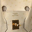 This is an authentic HERMES Ostrich Birkin 25 in Nata. This handbag is expertly handcrafted of exotic ostrich leather in light beige. The bag features rolled leather top handles, a frontal flap with a strap closure with gold plated hardware including a padlock and a leather covered key clochette. The top flap opens to a chevre goatskin leather interior with zipper and patch pockets.