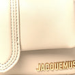 This is an authentic JACQUEMUS Padded Lambskin Le Petit Bambimou in Light Beige. This stylish petite handbag is beautifully crafted of soft padded lambskin leather in beige. It features two leather shoulder straps, the signature gold metal logo and hardware, and a slip pocket at the back. The front flap opens to a beige fabric interior with a patch pocket.