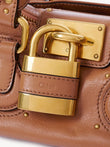 Introducing the iconic Paddington handbag by Chloé, a timeless piece that epitomizes luxury and sophistication. Crafted from supple cognac leather, this structured satchel features the signature oversized padlock closure and decorative key charm that made it a fashion phenomenon.