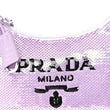 This is an authentic PRADA Paillettes Sequin Mini Re-Edition 2000 Bag in Lilium and Black. This Prada handbag is crafted of crystal-embellished satin. The bag features a nylon shoulder strap and the top zipper opens to a matching fabric interior.