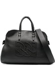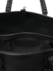 BLACK LEATHER CONSTRUCTION EMBOSSED LOGO TOP HANDLES BUCKLE FASTENING DETACHABLE SHOULDER STRAP