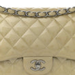 Patent Calfskin Quilted Jumbo Double Flap Grey