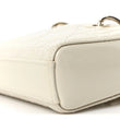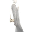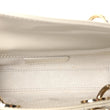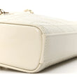 This is an authentic CHRISTIAN DIOR Patent Cannage Micro Lady D-Joy in Latte. This attractive mini bag is crafted of white leather with an embroidered geometric pattern. The bag features two removable shoulder leather and chain straps, top handles, and polished gold tone hardware, including Dior letter charms. The top flap opens to a white suede leather interior.
