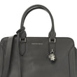 Pebbled Calfskin Small Skull Padlock Zip around Tote Dark Grey