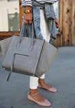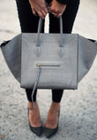 Medium size. Distinctive wings and stamped crocodile leather set this Celine tote apart from the rest. A braided zipper, sturdy double-rolled leather handles, and antique gold tone hardware accentuate the simple, modern Celine style. Leather interior, one zip pocket internally and externally