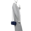 This is an authentic CHANEL Plexiglass Boy Brick Lego Clutch in Dark Blue. This stunning clutch is crafted of navy plexiglass with decorative blocks. The entire facing and the rear surface is a Chanel CC Boy turn tock with a below the waist threaded silver chain shoulder strap. A block switch lock top opens to a leather interior with a zipper pocket partition.