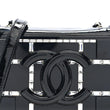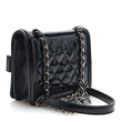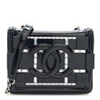 This is an authentic CHANEL Plexiglass Patent Baguette Crystal Mini Boy Brick Flap in Black. This stunning clutch is crafted of smooth and diamond quilted patent leather in black. The front is covered with a decorative plexiglass plate with baguette crystal lined blocks and a black Chanel CC logo. This bag also features a leather threaded polished silver chain link cross-body strap with a patent leather shoulder pad. The flap opens to a black fabric interior with a flat pocket and room for day or evening essentials with the timeless style of Chanel!