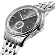 Breitling Premier Automatic 40 watch with brushed and polished finished Stainless steel case, Reference A37340351B1A1. A distinctive feature of this watch model namely elegant detail such as grooves on the side of the case. Grey dial and Silver dial flange with printed minute track with 5-minute Arabic numerals intervals on the outer perimeter. Applied silver-tone index hour markers and luminous silver-tone hands. Small seconds sub-dial at 6 o'clock. The dial closed by a cambered sapphire crystal, glare-proofed both sides. The watch has Stainless steel Push / pull crown with Breitling logo with ribbed edge for a comfortable grip also Solid case back. They have fixed stainless steel bezel. The Watch comes with Breitling caliber 17 Automatic movement containing 31 Jewels and has a power reserve of approximately 38 hours. The watch presented on the polished seven-row Curved Stainless Steel bracelet with Push Button Deployant Buckle. The water resistance is up to 100m/330ft.