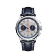 Unworn Breitling Men’s Watch Premier B01 Chronograph 42 BENTLEY MULLINER LIMITED EDITION, Stainless steel case, brushed and polished finished, Reference AB0118A71G1P2. The new Premier Bentley chronograph has some close links to the interior of the most luxurious GT ever designed by Mulliner, and particularly to the Breitling clock in the luxury automobile’s dashboard. Featuring blue and red accents, the watch echoes the interior of the car. In addition, the vertically brushed silver dial of the Premier recalls the car’s Breitling dashboard clock with black dial flange with Tachymeter scale. The decoration of this model is applied index hour markers located at the 3, 6, 9, 12 o’clock position, for the dashboard clock, also complements set of Arabic numerals: 1, 2, 4, 5, 7, 8, 10, 11 for the chronograph. The silver-tone polished Stainless Steel minute and hour hands with luminous filled tops. Arabic numeral minute markers (at 5-minute intervals) around an inner ring. The watch has polished Stainless steel non-screw-locked crown with two gaskets, ribbed edge for a comfortable grip also Breitling logo, rectangular chronograph pushers. The dial closed by a Cambered Scratch-resistant Sapphire Crystal with glare-proofed both sides. Of Sapphire Crystal made transparent case back sapphire. On the left side of the case is a plate with an engraved “Bentley” inscription, whose design is based on the engine spin dashboard found in historic Bentleys. On each model Premier B01 Chronograph inflicted engraved “ONE OF 1.000” Blue small seconds-hand sub-dial located at the 9 o'clock position. Chronograph functions: Column wheel mechanism; Red central seconds counter hand; blue 30-minutes counter sub-dial located at the 3 o'clock position. The watch is equipped fixed silver-tone Stainless Steel bezel. The watch is Breitling in-house caliber B01, contains 41 jewels and has an approximate power reserve of 70 hours. The watch presented on a blue Alligator/Crocodile leather strap with Stainless Steel Tang Buckle. The water resistance is up to 100m/330ft.