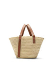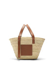 BASKET BAG IN WOVEN PALM LEAF AND BROWN CALFSKIN LEATHER. IT FEATURES TWO FIXED, ADJUSTABLE LEATHER TOP HANDLES, A BROWN LEATHER APPLIQUé WITH EMBOSSED LOEWE ANAGRAM MOTIF, AND A SINGLE INTERNAL COMPARTMENT. DUST BAG INCLUDED. ANY IMPERFECTIONS SHOULD NOT BE CONSIDERED MANUFACTURING DEFECTS BUT RATHER A CHARACTERISTIC OF THE MATERIAL.