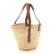 This is an authentic LOEWE Raffia Basket Tote Bag in Natural and Tan. This chic tote is crafted of woven raffia in beige with tall adjustable brown leather strap handles and a front patch with an embossed logo.