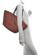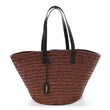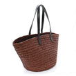 Raffia Calfskin Medium Panier Tote Dark Chocolate