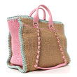 Raffia Crochet Medium Deauville Tote Beige Light Pink Green