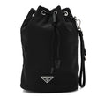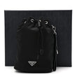 This is an authentic PRADA Re-Nylon Vela Drawstring Wristlet Pouch in Black. This chic bag is crafted of nylon in black. The bag features a top cinch cord and an optional black leather wristlet strap with polished silver hardware. The drawstring opens to a black logo jacquard interior.