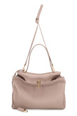 BAG IN HAMMERED CALF LEATHER WITH ANTIQUE GOLD FINISHES, MADE OF DURABLE MATERIAL. IT FEATURES A DOUBLE SWIVEL CLOSURE, TWO FLAT POCKETS ON THE BACK, A COMFORTABLE HANDLE FOR TRANSPORT, AND A REMOVABLE KEYCHAIN WITH A DOUBLE SPIRAL RING. ITS INTERIOR IS CHARACTERIZED BY A DIVISION INTO TWO COMPARTMENTS AND A ZIP POCKET. THE BAG IS EQUIPPED WITH A REMOVABLE SHOULDER STRAP FOR VARYING ITS TRANSPORT. IDEAL FOR ADDING A TOUCH OF SOPHISTICATION TO ANY OUTFIT, IT IS A VERSATILE ACCESSORY FOR ANY OCCASION.