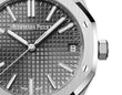 Unworn Audemars Piguet Royal Oak SELFWINDING "50TH ANNIVERSARY" 15510ST.OO.1320ST.05. 41 mm, Grey dial with “Grande Tapisserie” pattern, white gold applied hour-markers and Royal Oak hands with luminescent coating, Stainless steel case, glareproofed sapphire crystal and caseback, 4302 calibre, Selfwinding movement, 70 h power reserve, 32 jewels, Stainless steel bracelet with AP folding clasp. Water resistant to 50 m.
