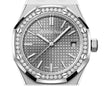 Unworn Audemars Piguet Royal Oak SELFWINDING "50TH ANNIVERSARY" 15551ST.ZZ.1356ST.03. 37 mm, Grey dial with “Grande Tapisserie” pattern, white gold applied hour-markers and Royal Oak hands with luminescent coating, Stainless steel case, bezel set with brilliant-cut diamonds, glareproofed sapphire crystal and caseback, 5900 calibre, Selfwinding movement, 60 h power reserve, 29 jewels, Stainless steel bracelet AP folding clasp. Water resistant to 50 m.
