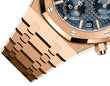 Unworn Audemars Piguet Royal Oak SELFWINDING CHRONOGRAPH "50TH ANNIVERSARY" 26240OR.OO.1320OR.01. 41 mm, “Bleu nuit nuage 50” dial with “Grande Tapisserie” pattern, “Bleu nuit nuage 50” counters, pink gold applied hour-markers and Royal Oak hands with luminescent coating, 18-carat pink gold case, glareproofed sapphire crystal and caseback, screw-locked crown, 4401 calibre, Selfwinding movement, 70 h power reserve, 40 jewels, 18-carat pink gold bracelet with AP folding clasp. Water resistant to 50 m.