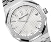Unworn Audemars Piguet Royal Oak SELFWINDING 15500ST.OO.1220ST.04. 41 mm, Silver-toned dial with “Grande Tapisserie” pattern, white gold applied hour-markers and Royal Oak hands with luminescent coating, Stainless steel case, glareproofed sapphire crystal and caseback, screw-locked crown, 4302 calibre, Selfwinding movement, 70 h power reserve, 32 jewels, Stainless steel bracelet with AP folding clasp. Water resistant to 50 m.