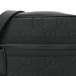 This is an GUCCI Rubber Effect Calfskin GG Mini Crossbody Bag in Black. This practical bag is crafted in black calfskin with a rubber effect. It features an adjustable strap and the top zipper opens to a fabric interior with a patch pocket.