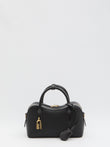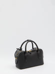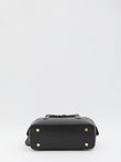 BLACK VEGAN BAG. IT FEATURES A SCULPTURAL SILHOUETTE THAT PAYS HOMAGE TO THE HORSE FIGURE, A REMOVABLE SHOULDER STRAP, A LOCK WITH ENGRAVED LOGO, TWO TOP HANDLES, ZIP CLOSURE, CANOPY LINING, ONE MAIN COMPARTMENT, AND ONE INNER POCKET. DUST BAG INCLUDED.