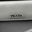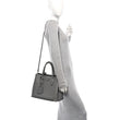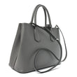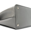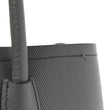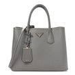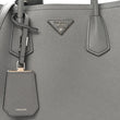This is an authentic PRADA Saffiano Cuir Small Double Bag in Marmo. This tote is crafted of beautifully textured cross-grain Saffiano leather in grey. This hand bag features rolled leather top handles with a strap keeper, expandable snap sides, and silver hardware. The top opens to a spacious compartmented in black leather interior with a central dividing flap pocket.