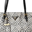 This is an authentic PRADA Saffiano Diamond Print Tote in Multicolor. This chic handbag is crafted saffiano leather in multicolor with a geometric diamond print in black, ivory and grey. The bag features black vernice saffiano leather handles, and polished gold hardware. The top zipper opens to a spacious black Prada logo fabric interior with a zipper and patch pockets.