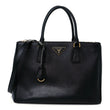 This is an authentic PRADA Saffiano Medium Galleria Double Zip Tote in Black. This tote is crafted of black saffiano cross grain leather and gold hardware. The top opens to a black fabric interior.