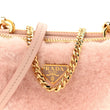 This is an authentic PRADA Saffiano Shearling Triangle Mini Pouch in Orchidea. This stylish bag is crafted of saffiano calfskin leather and shearling in pink. The bag features a smooth leather shoulder strap and gold chain handle. The top zipper opens to a matching Prada monogram fabric interior with card slots.