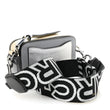 This is an authentic MARC JACOBS Saffiano Small Snapshot Camera Bag in Grey and Multicolor. This professionally styled camera bag is beautifully crafted of textured calfskin leather in light grey, beige, and dark grey. The bag features an adjustable black and silver canvas shoulder strap, a rear pocket, and silver hardware. The top zippers each open to a compact grey fabric interior with a patch pocket.