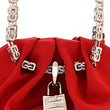 This is an authentic GIVENCHY Satin Mini Kenny Shoulder Bag in Red. The bag is crafted of satin fabric in red. It features a silver chain shoulder strap with a removable padlock bag charm on the front. The top secures with a magnetic closure and leads to a matching fabric interior.