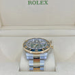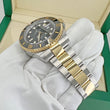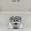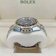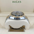 Rolex Sea-Dweller, 43mm watch of polished Stainless Steel and 18k Yellow Gold. This model has black dial with a polished 18k Yellow Gold hour, minute and seconds hands in Mercedes-logo and Breguet-style sword shape with luminous fill. Applied polished 18kt Yellow Gold rimmed doty and index hour markers with luminous fill. Fine printed minute/seconds track on the dial rim. Highly legible Chromalight display with long-lasting blue luminescence. Polished 18kt Yellow Gold patented "Triplock" locking crown ensuring that the crown screws down onto the Oyster case as securely as a submarine hatch. The dial closed by a Scratch-resistant Sapphire Crystal and solid case back made. The Watch has Centre hour, minute and seconds hands. Stop-seconds for precise time setting. Date window at 3 o'clock with a cyclops magnifier. The watch is equipped unidirectional rotatable polished 18k Yellow Gold bezel with knurled corners for enhanced grip. Black "Cerachrom" bezel insert, made of ceramic which is extremely hard, durable and highly scratch-resistant. Ceramic has excellent corrosion resistant properties and is unaffected by ultraviolet rays so the color will not fade. It features a 60-minute immersion scale engraved indexes and numbers with PVD yellow gold coated graduation with a luminous dot at the starting triangle. The movement is mechanical self-winding 3235, containing 31 Jewels and 70 hours of power reserve. The Rolex Oyster bracelet of brushed outer links Stainless Steel and polished center links 18k Yellow Gold with folding Oysterlock safety clasp with Rolex Glidelock extension system. The water resistance is up to 1220m/4000ft.