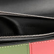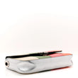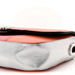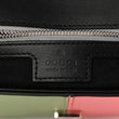 This is an authentic GUCCI Senna Calfskin Petite GG Top Handle Shoulder Bag in Mystic White, Silver, and Multicolor. This shoulder bag is crafted of smooth calfskin leather in off-white with silver panels and green, pink, and orange stripes. The bag features a black leather top handle, an optional leather shoulder strap with silver chain links, and a silver GG logo on the front. The push lock opens to a black fabric interior with a zipper pocket.