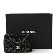 This is an authentic CHANEL Sequin Small Single Flap Rectangular Flap in Black. This stylish shoulder bag is crafted entirely of individual black sequins. The bag features gold chain link leather threaded shoulder straps and a gold Chanel CC logo. This opens to a black leather interior with a zipper pocket.
